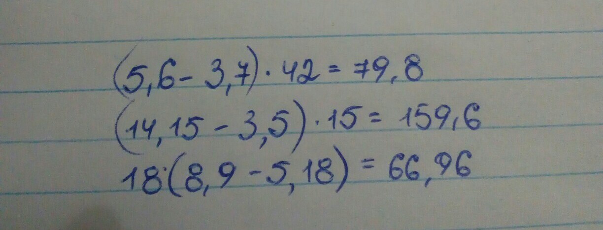 1) (5 целых 6 десятых - (минус) 3 целых 7 десятых)×42