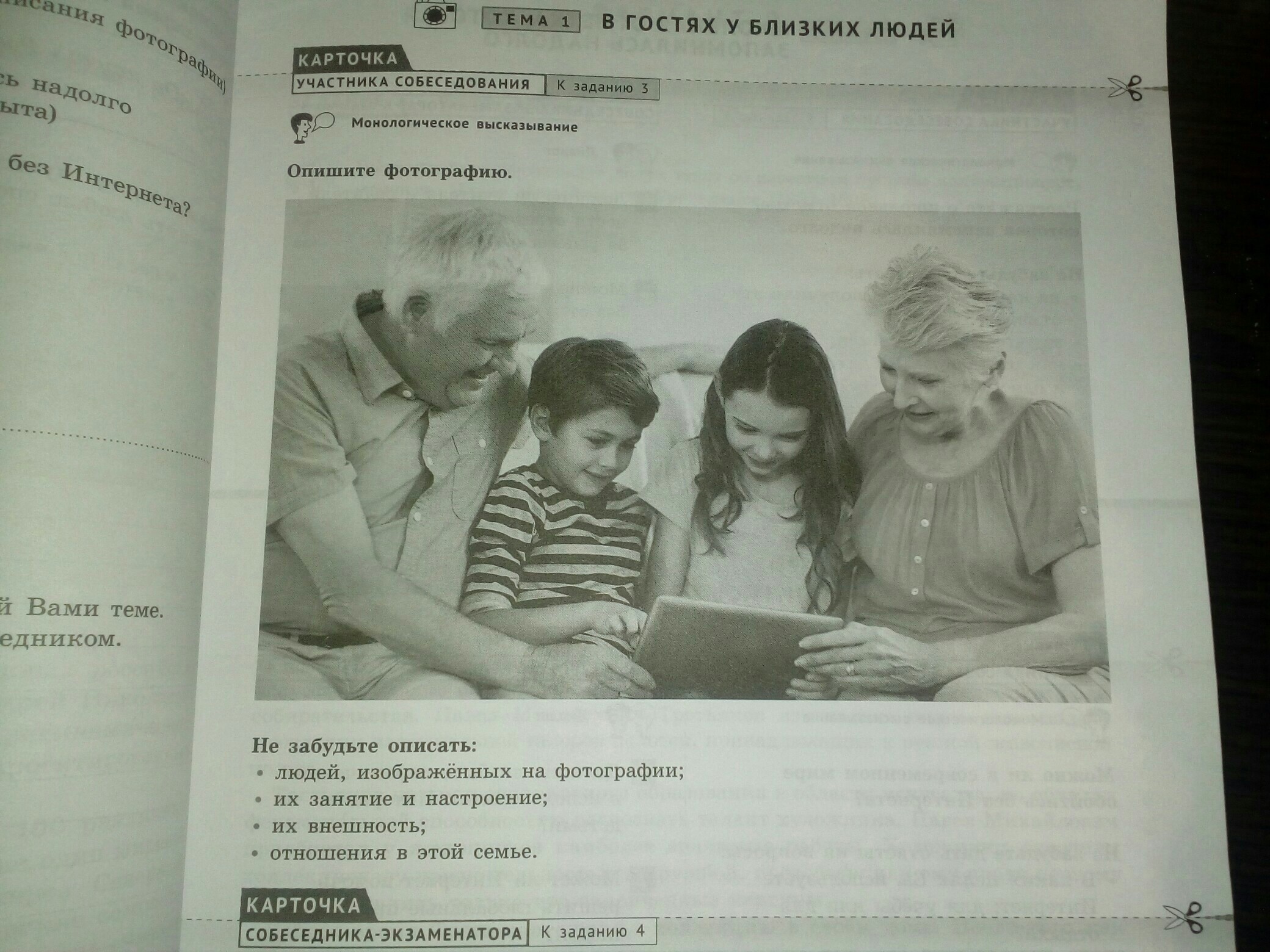 На фотографии мы видим бабушку,дедушку,девочку и мальчика. Девочка сидит в планшете,а бабушка,дедушка и мальчик присоединились к ней. Бабушка,как и дедушка сидит в футболке и штанах,так же у неё короткая причёска. У девочки длинные волосы,сидит она,как и брат в футболке,но у брата короткие волосы. Видно ,что они очень дружные,весёлые и часто собираются вместе.