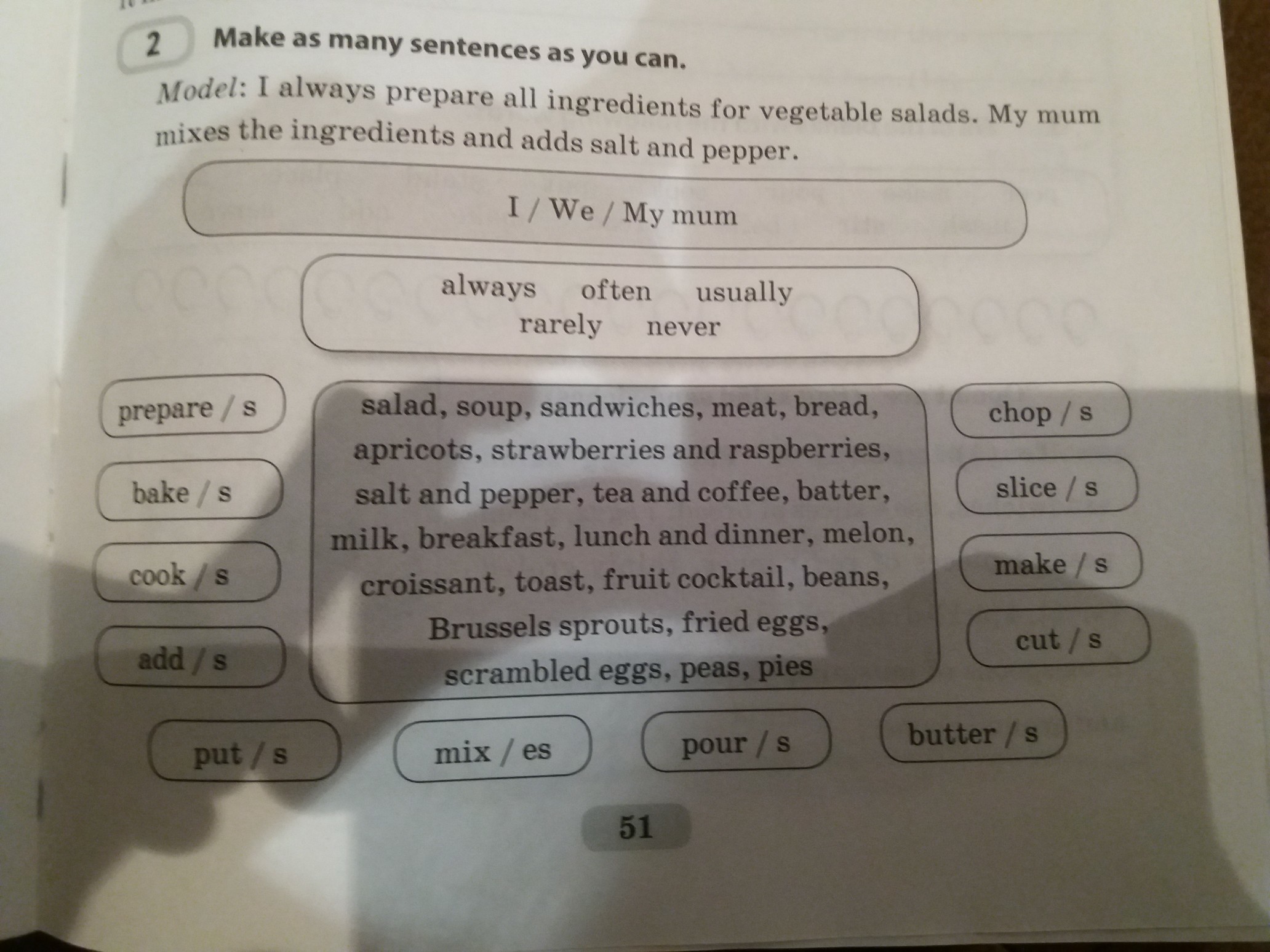 I always prepare to eat salad with meet dishes. I often add to salad salt and preper. But for example my mum doesn't like salads which are cooked by me. May be because I am very stupide with out hands...