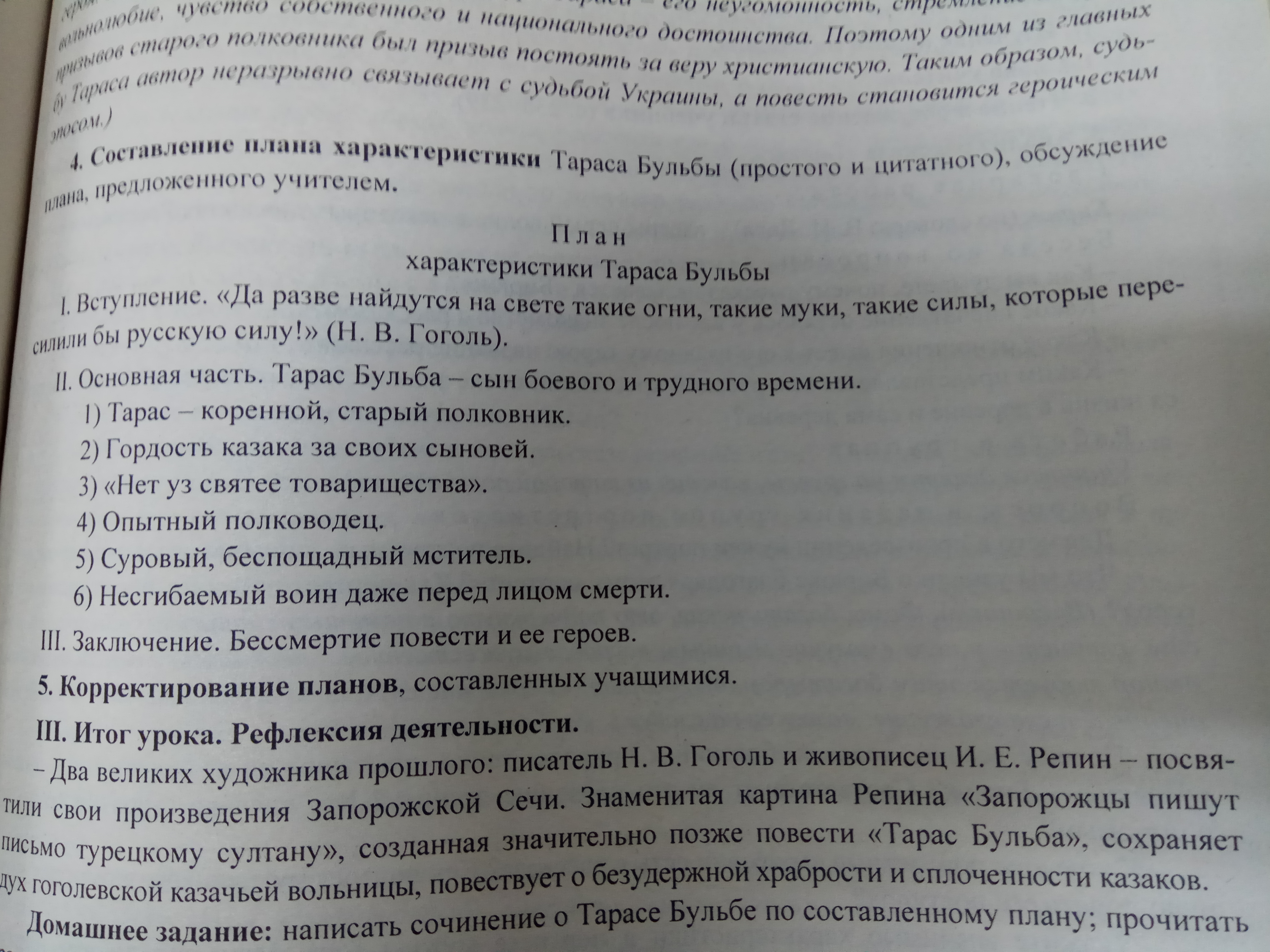 Помоготе пожалуйста СРОЧНО!!! 25 баллов!!! Сочинение по литературе 7 класс "Тарас Бульба" Н.В.Гоголь по плану: