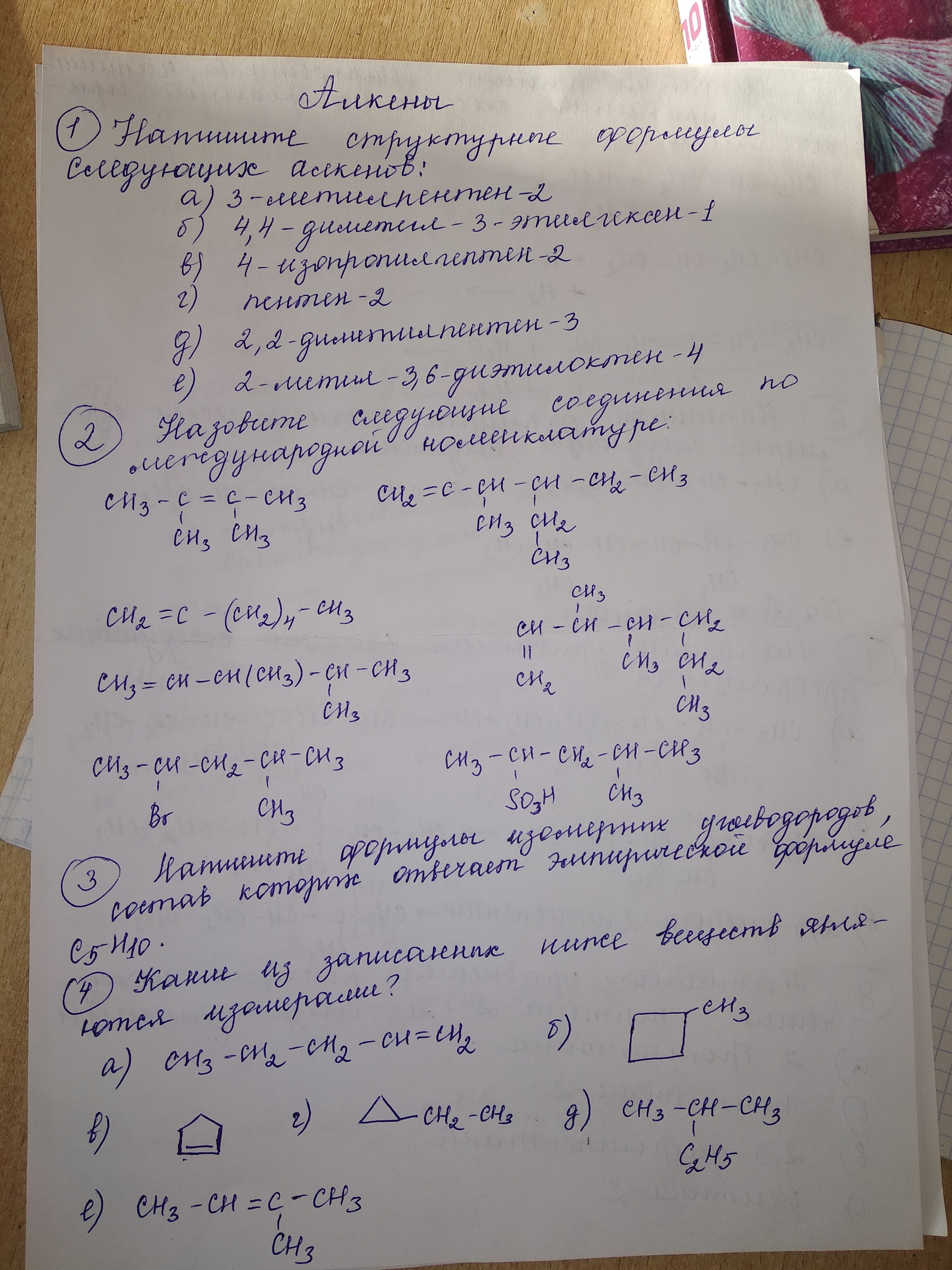Алкены.Назовите следующие соединения по международной номенклатуре :
