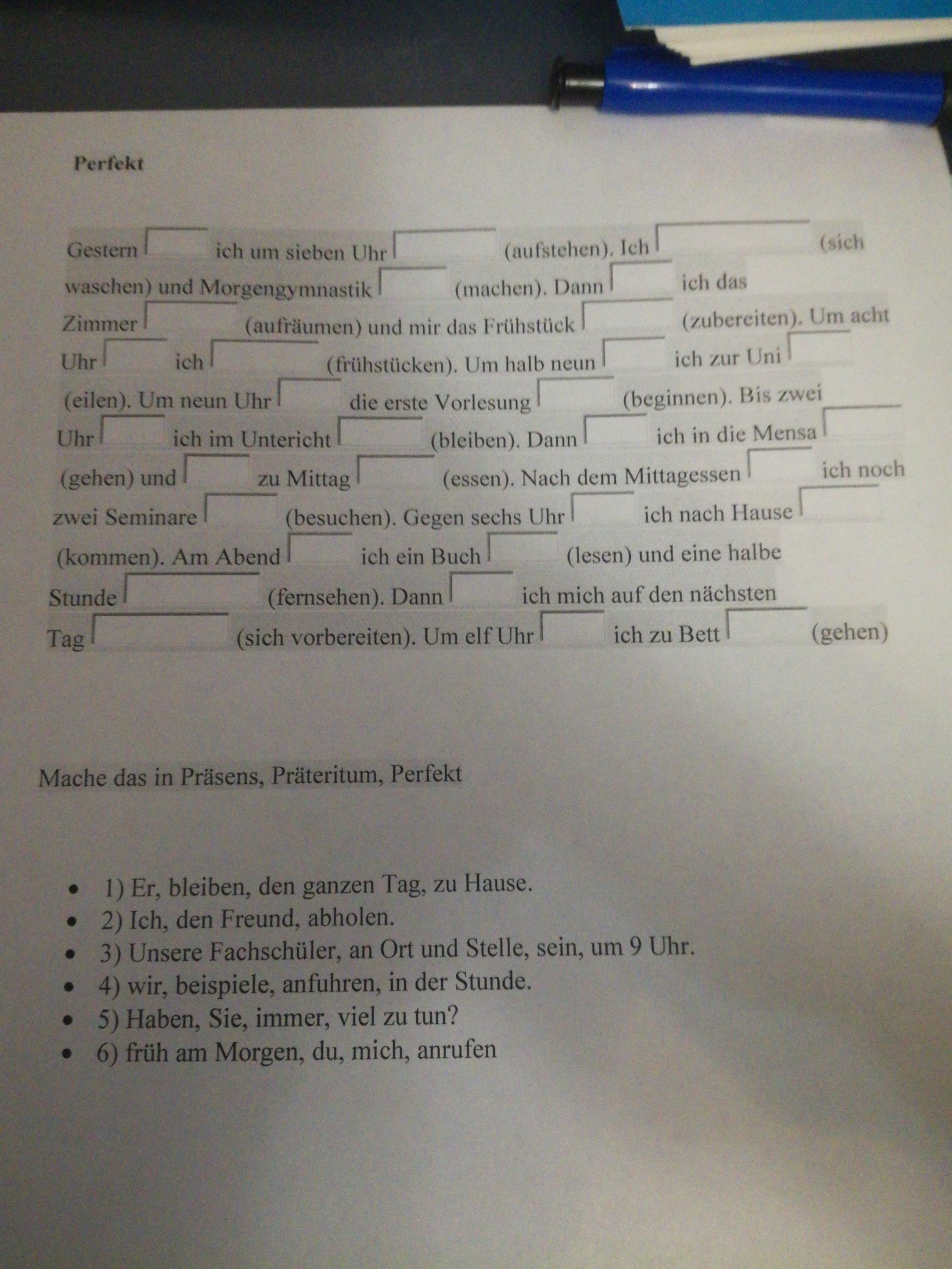 Dann habe ich ... aufgeräumt ... zubereitet.