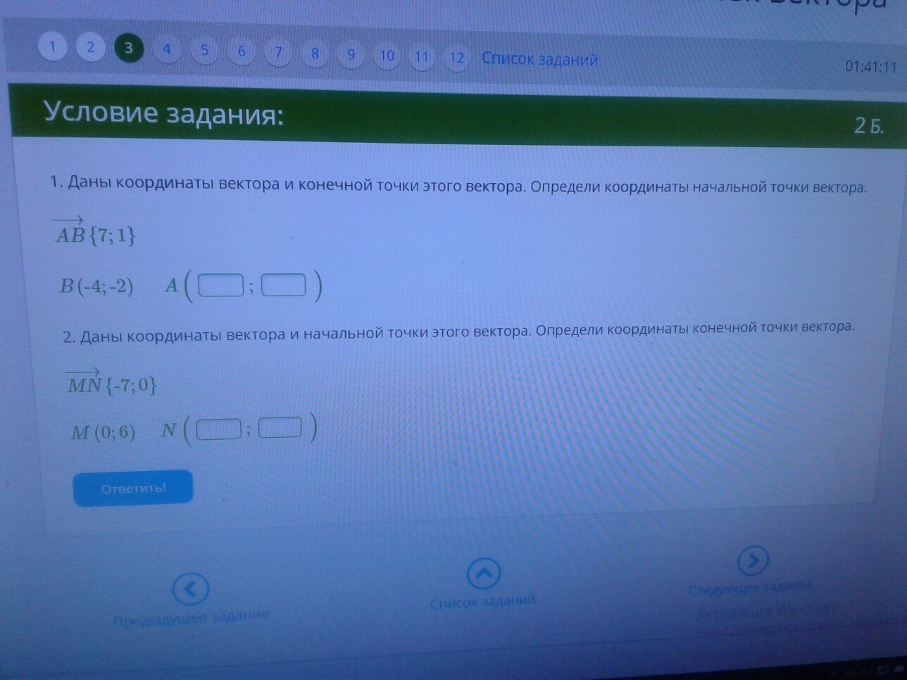 1) А(11;3);