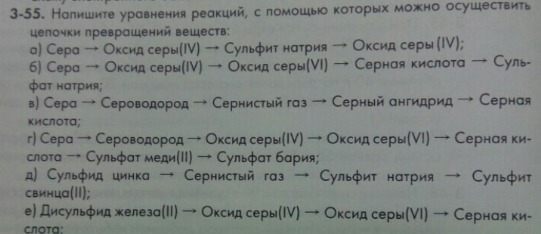 г) Сера --> Сероводород --> Оксид серы(IV) --> Оксид серы(IV) --> Серная кислота --> Сульфат меди(II) --> Сульфат бария;