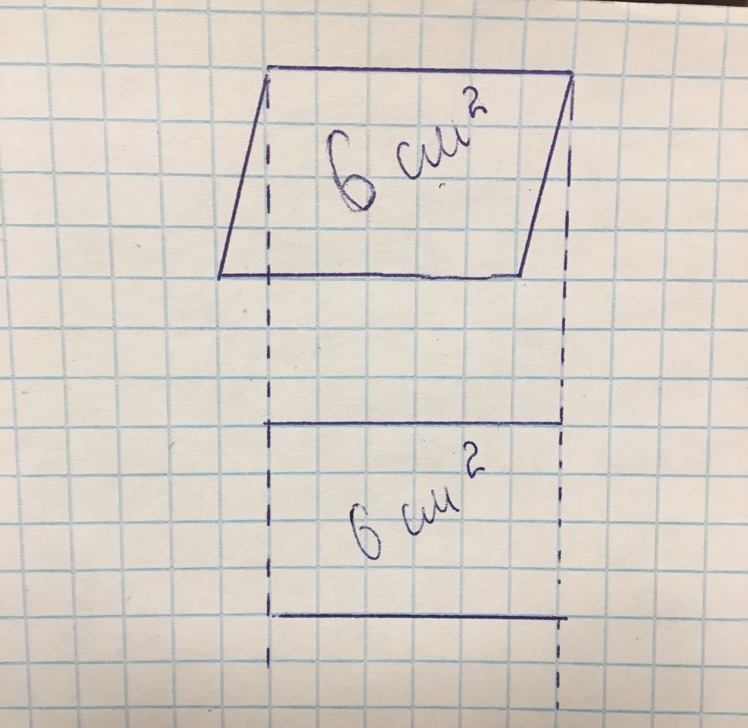 Начертите произвольный параллелограмм.Постройте какой - либо прямоугольник,имеющий такую же площадь,что и изображенный параллелограмм.