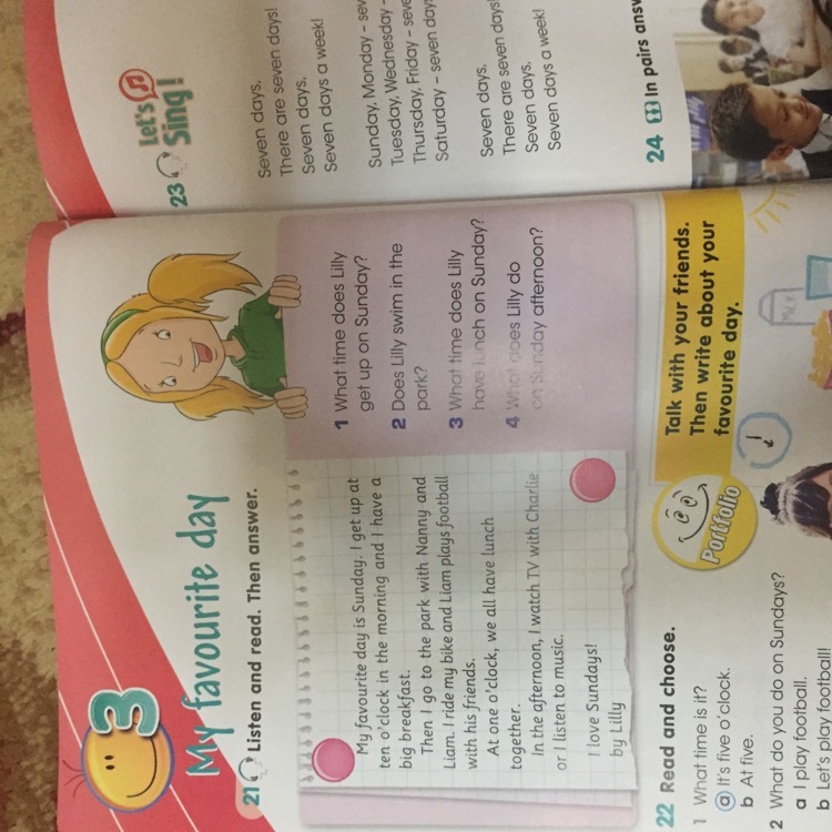 4.Lily watches TV and listen to music.