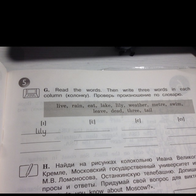 /ei/ rain, lake, tail /I/ live lily swim /I:/ leave eat three /e/ weather metre dead
