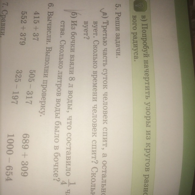 а) Сутки – 24 часа, а значит нужно 24:3 и получить 8. 8 часов человек спит, а в остальные 24-8=16 часов бодрствует.
