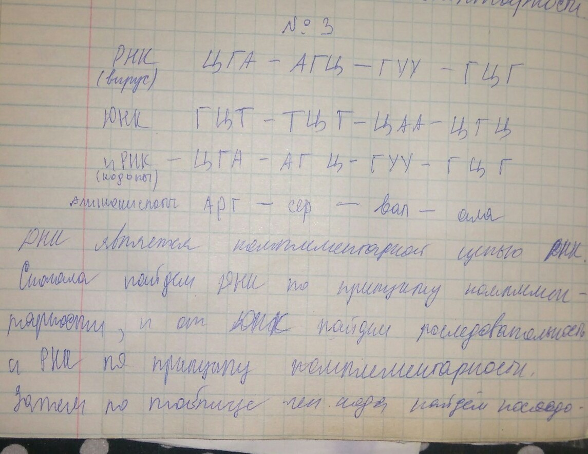 Определить, какова будет последовательность вирусного белка, если матрицей для синтеза иРНК служит цепь , комплементарная вирусной РНК. Ответ пояснить. Таблицу ген кода в помощь