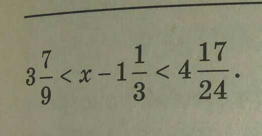 щоб знайти х тобі потрібно звести вираз до спільного знаменика і потім способом бідбора знайти х тобто якщо ми 5 цілих 74/72 віднімемо від 1 цілої 24/72 то вийде х=4 цілих 50/72 тобто це вийде 4 цілих 50/72 буде більшим за 3 цілих 7/9 і меншим від 4 цілих 17/24