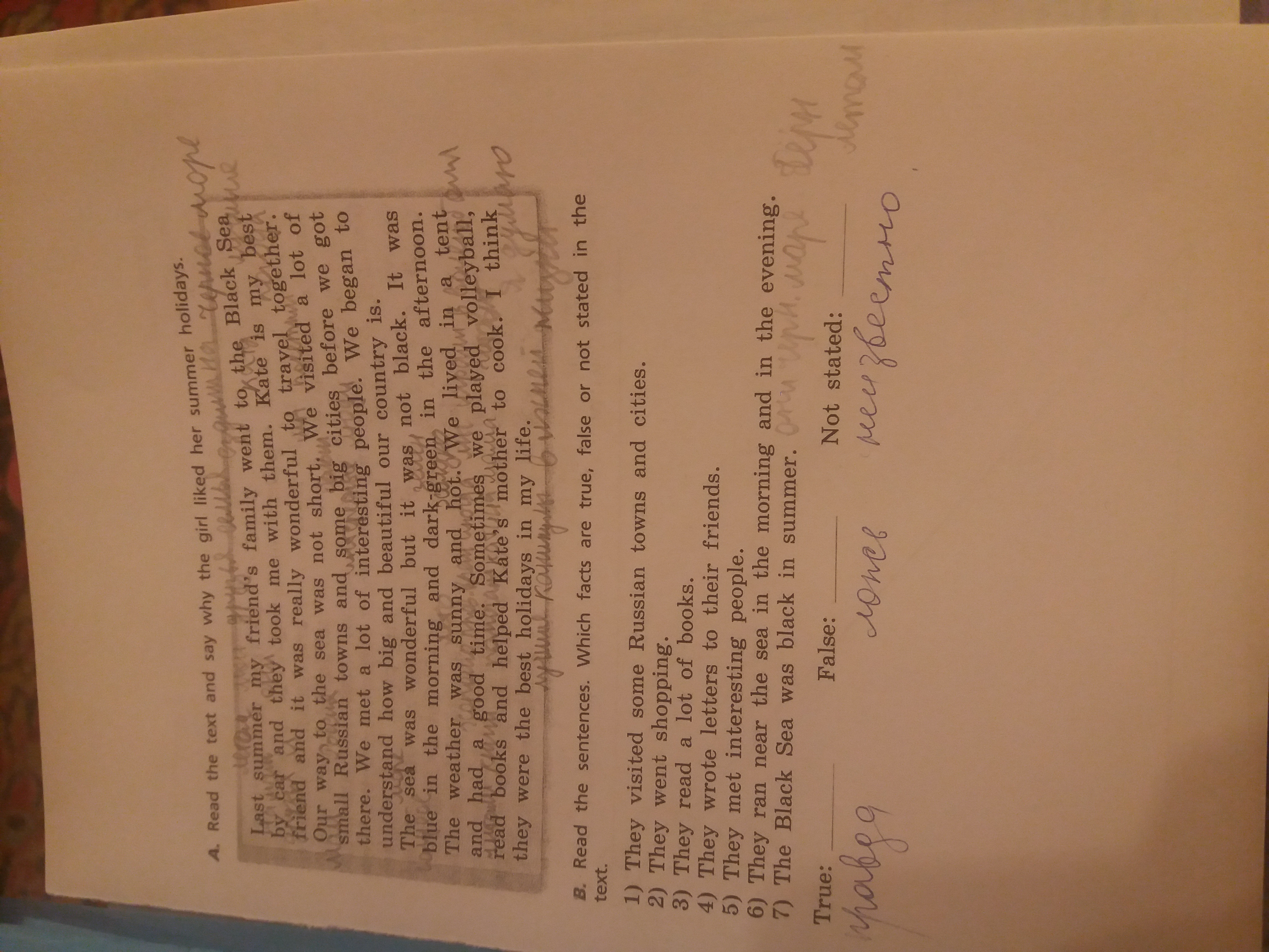 Помогите пожалуйста с английским языком, текста и заданием снизу. Ответить надо правда,ложь,неизвестно.