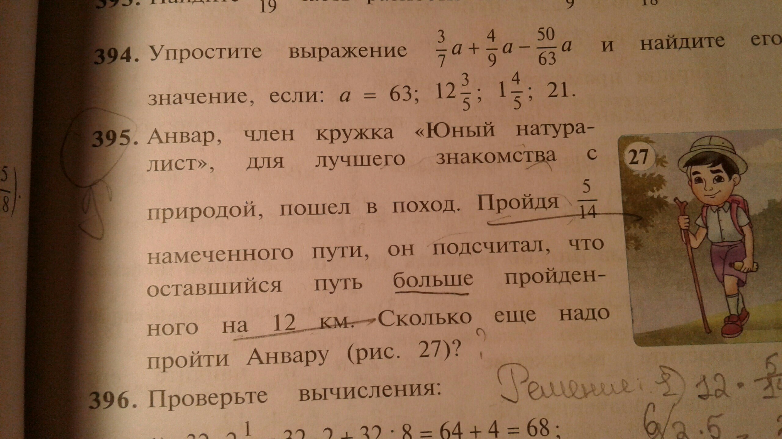 2. 9/14-5/14=4/14=12 км разница между пройденным и оставшимся путем