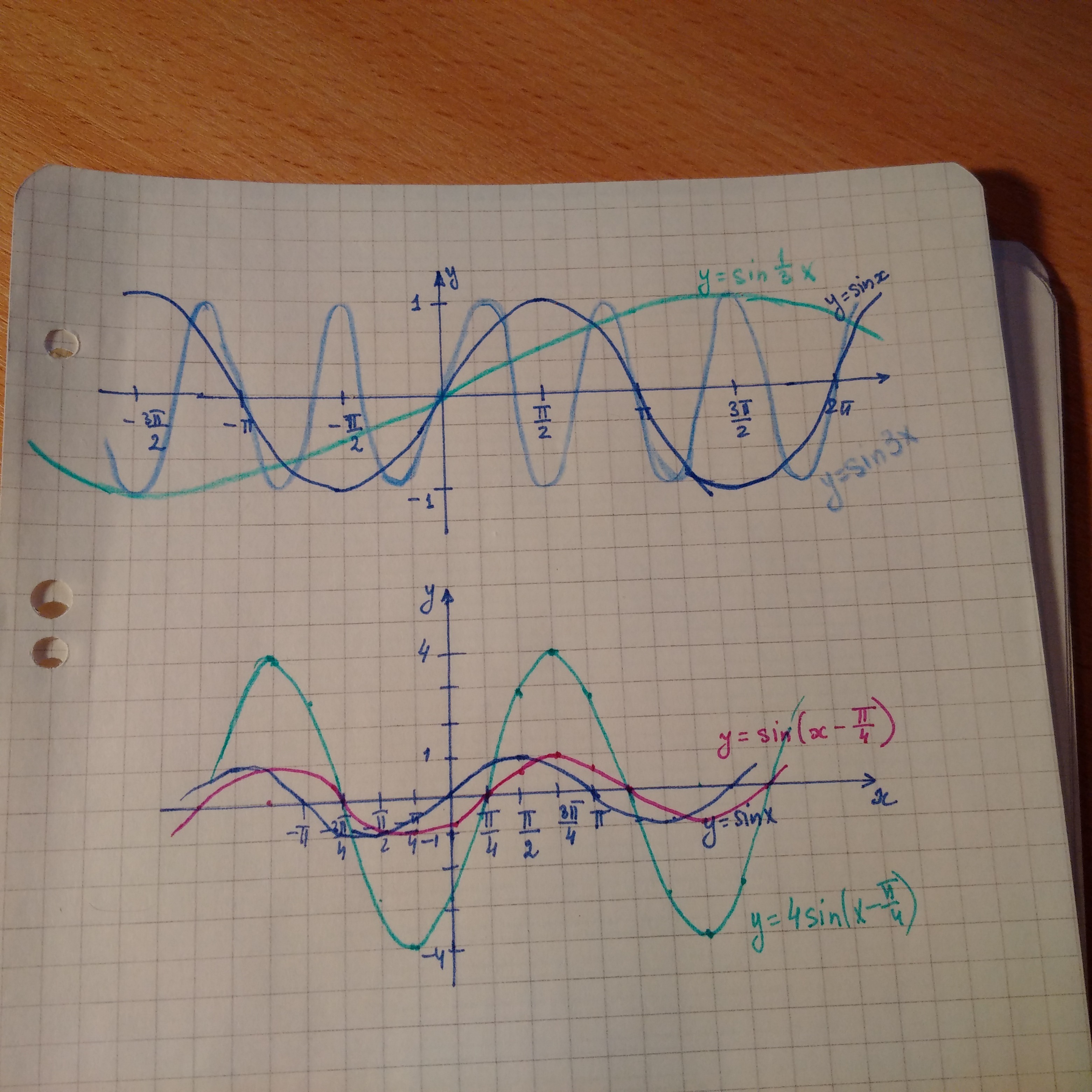Простите? Я Вам даже расписала последовательное построение графиков. Первые - это банальное растяжение/сжатие, смотрим куда переходит единица. Второй пример -- перенос (можно было делать либо перенос осей, либо сам график двигать)+растяжение.