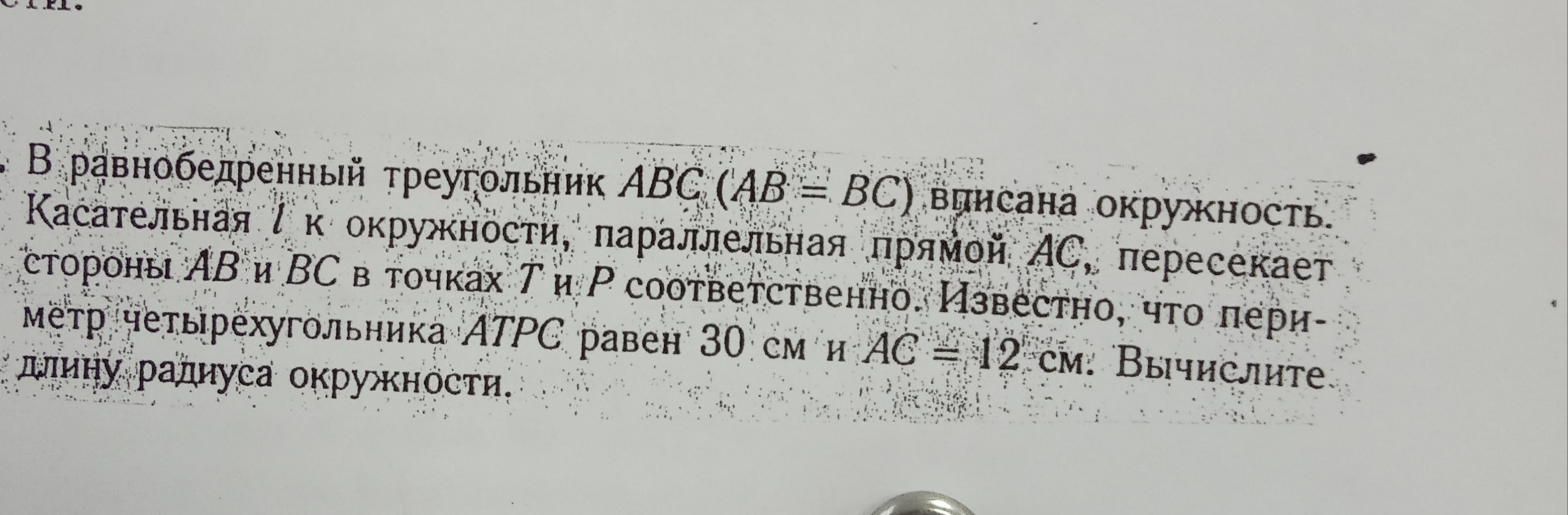 Если в задача дана окружность, вписанная в равнобедренный треугольник, в ее решении могут быть использованы свойства касательных и свойство биссектрисы треугольника