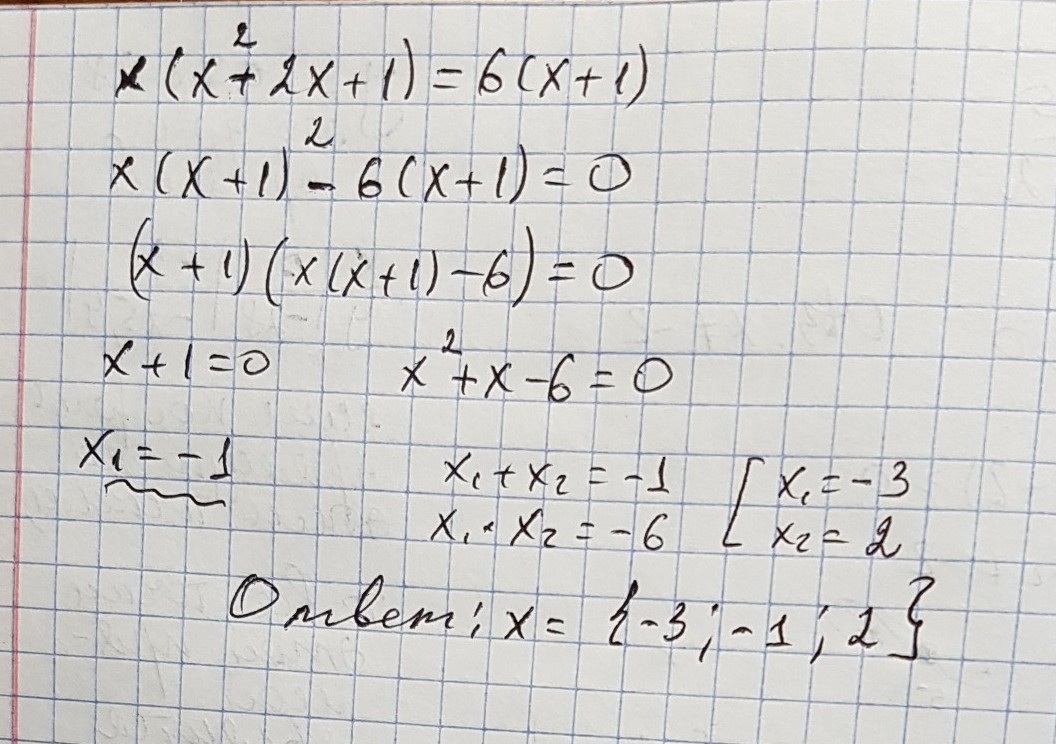 решить уравнение x(x2+2x+1)=6(x+1)