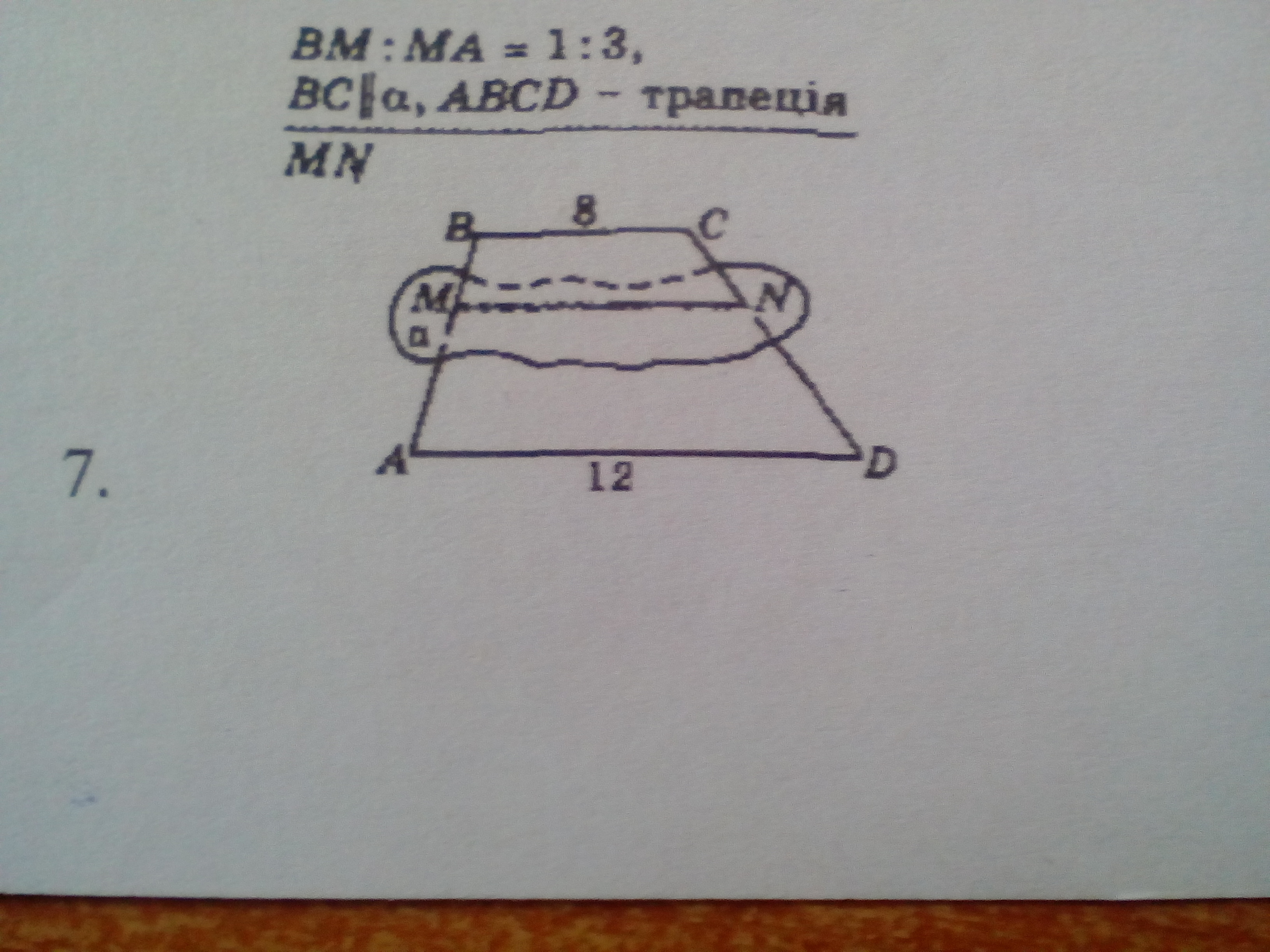 Выберем точку К середину АМ и проведем через нее КТ параллельно МN. Обозначим КТ=б, МN=a.