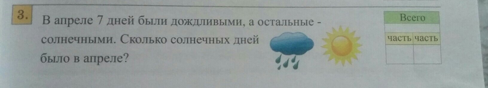 В апреле 7 дней были дождливыми,а остальные солнечными.Сколько солнечных дней было в апреле?
