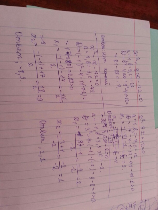 Д = 49 - 4 × 1 × 12 = 49 - 48 = 1 > 0. 1.