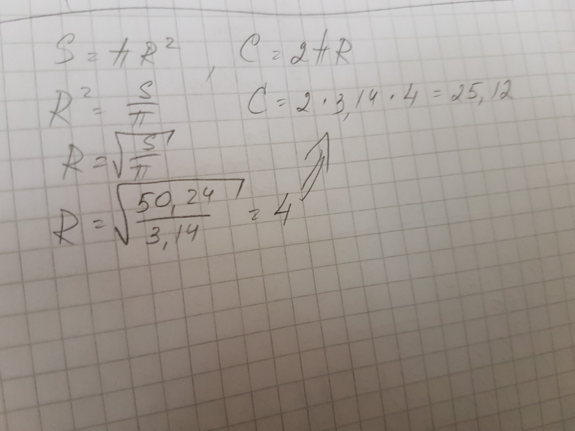 50,24=πr^2