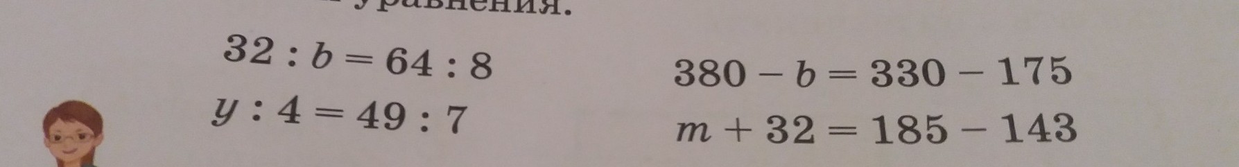 4) m + 32 = 185 - 143