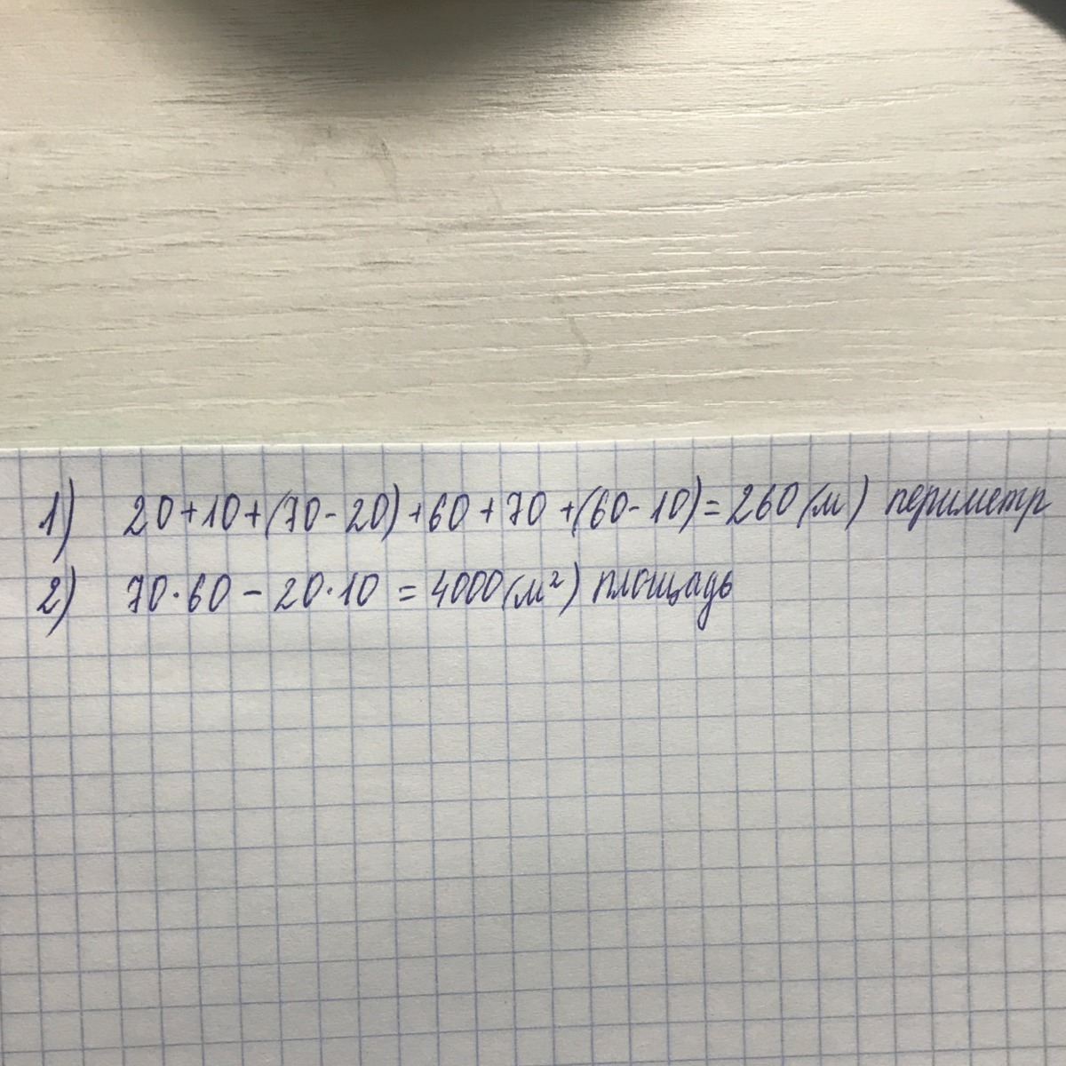 1) S= 60*70-10*20=4000(м)
