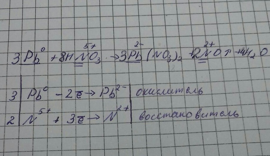 3. Расставьте коэффициенты методом электронного баланса в уравнении реакции: Pb + HNO3 (разб.) → Pb(NO3)2 + NO↑ + H2O Укажите окислитель и восстановитель.