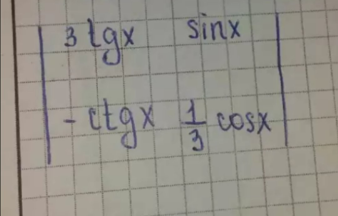Δ = 3tgx*1/3*cosx - sinx*(-ctgx) = tgx*cosx+sinx*ctgx = sinx + cosx
