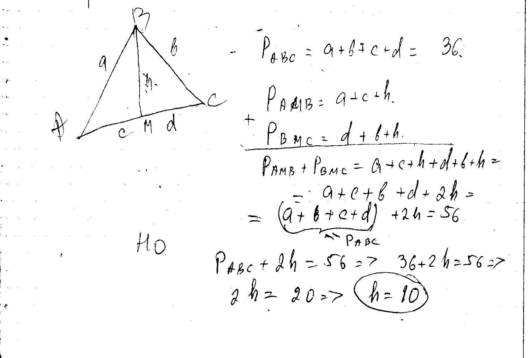 Найдите биссектрису треугольника с периметром,равным 36 ,если она разбивает его на 2 треугольника с периметрами 24 и 30