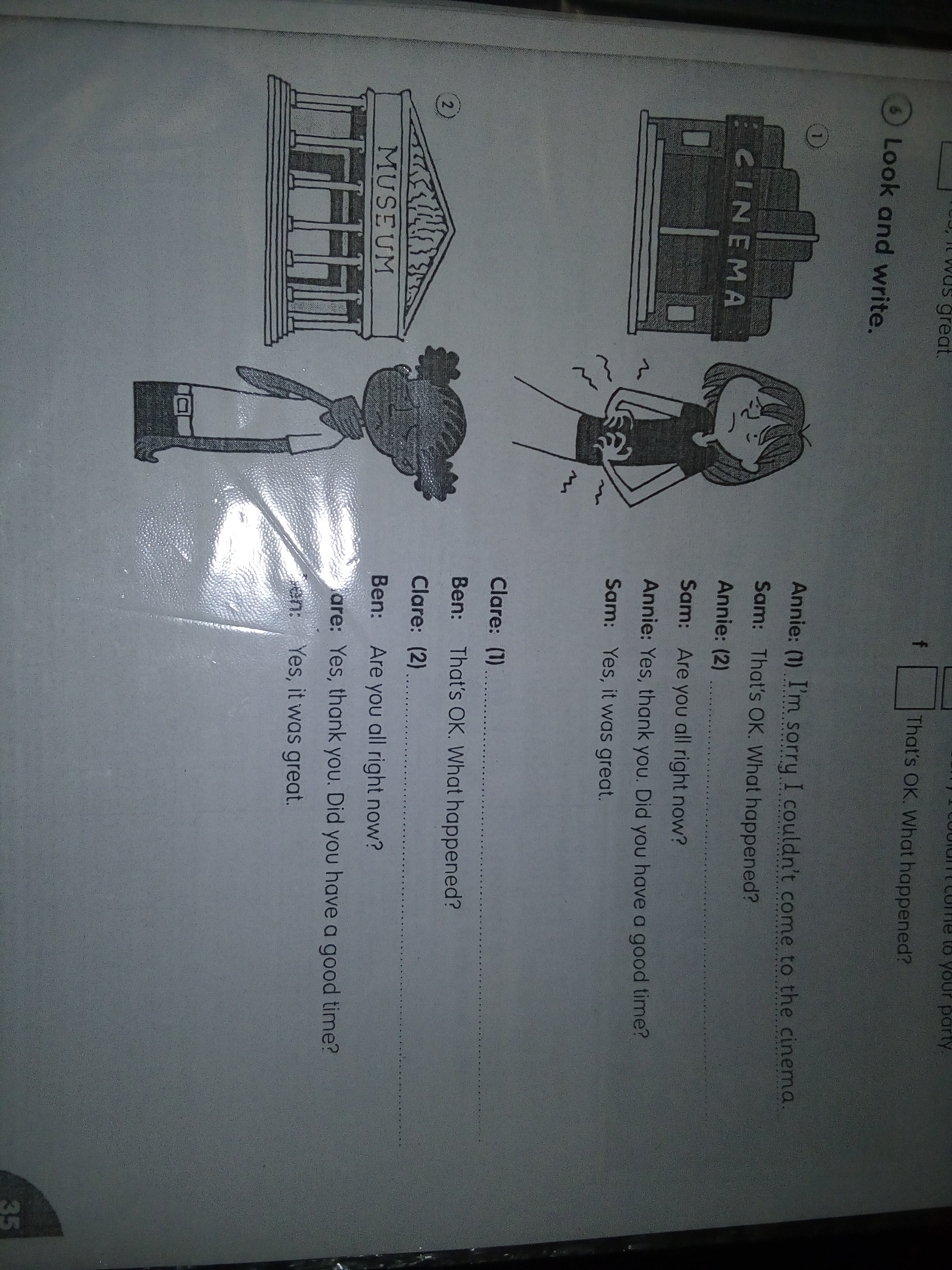 Clare: (1) I'm sorry I couldn't come to the museum.
