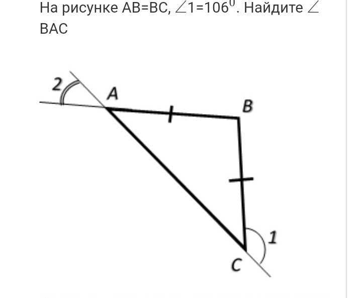 угол BAC=углуBCA так как это равносторонний треугольник (AB=BC)
