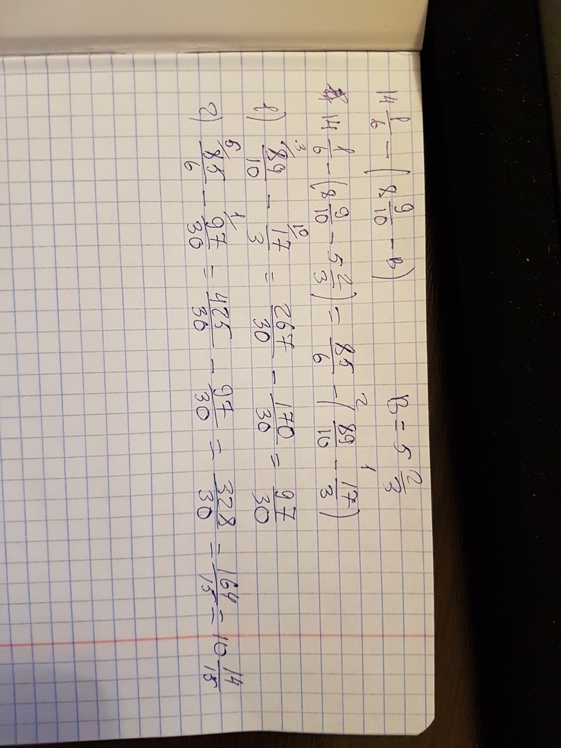 14 целых 1/6 - (8 целых 9/10 -в) при в =5 целых2/3