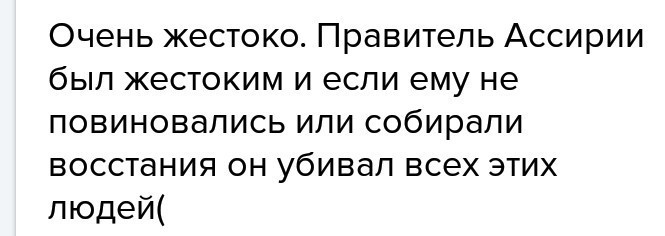 очень жестоко . ПРАВИТЕЛЬ Ассирии был жестоким и если ему не повиновались или собирали восстание он убивал всех этих людей