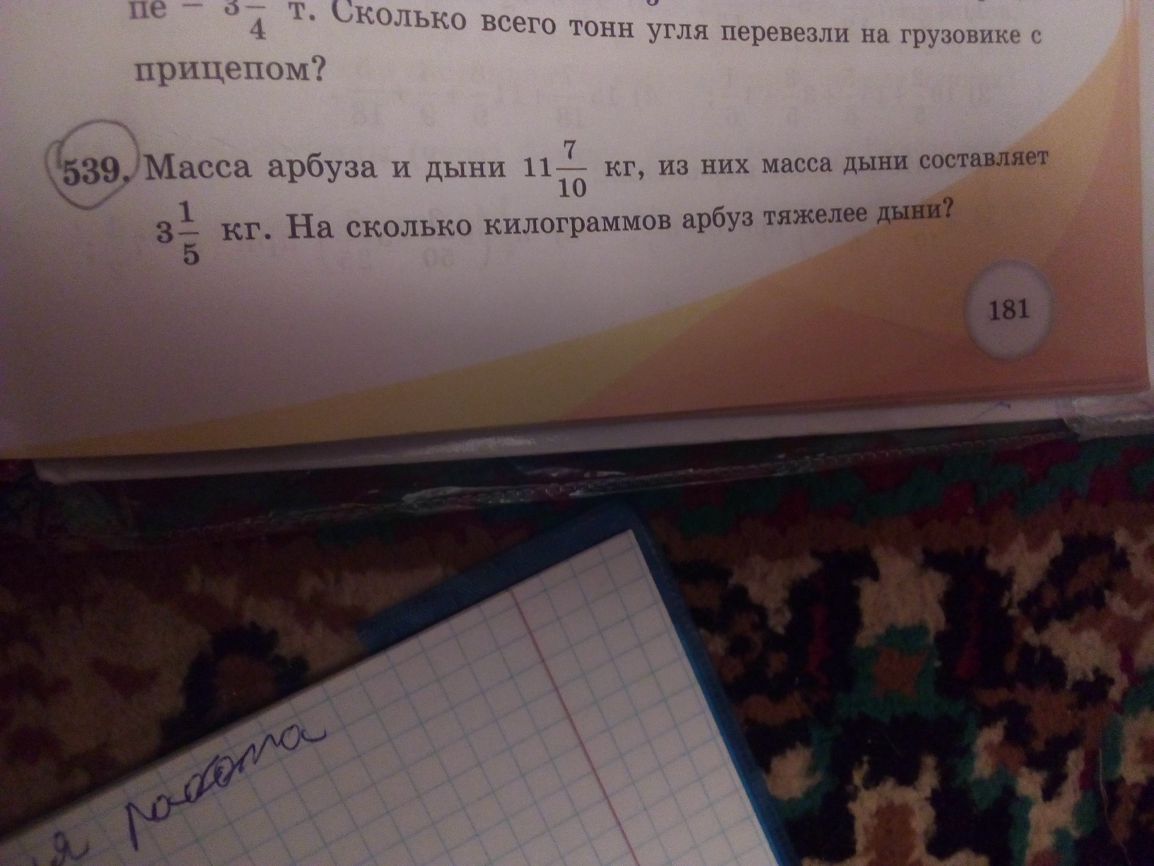 Чтобы найти массу арбуза 11 7/10 - 3 1/5 (приводим к общему знаменателю)