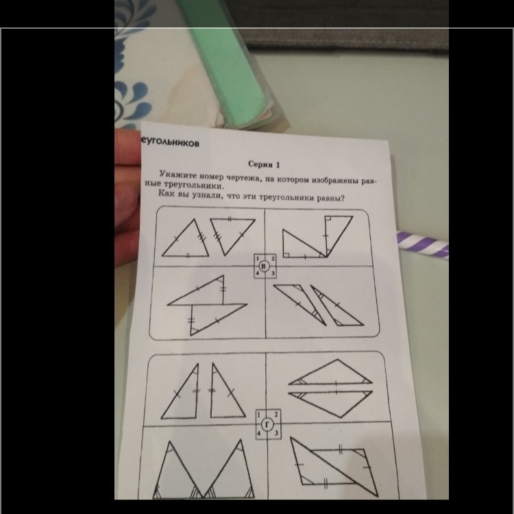Г-1(по двум сторонам и углу), 2(по двум углам и стороне), 4(по двум сторонам и углу между ними)