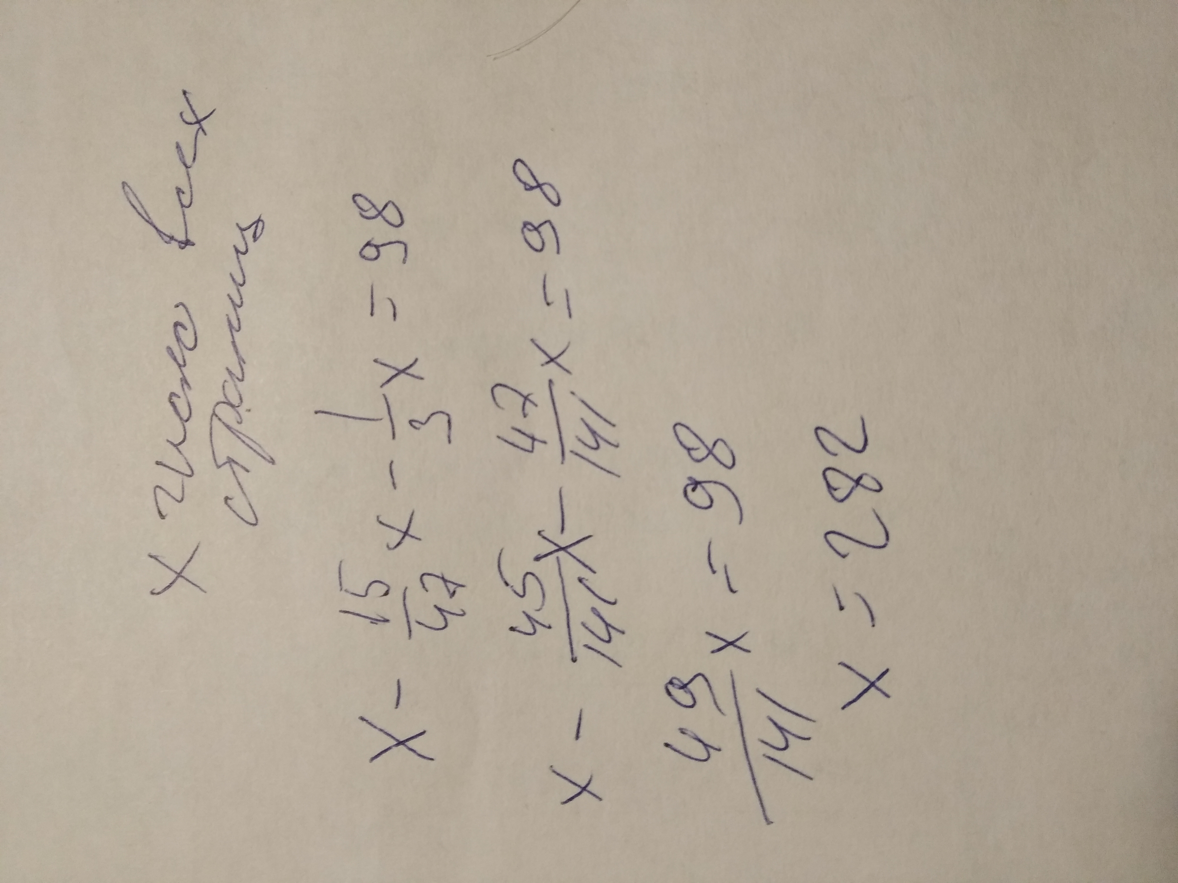 за первый день Тарас прочитал 15/47 всех страниц книги, за второй день 1/3 всех страниц, а за третий день остальные 98 страниц. Сколько страниц в книге. как решить