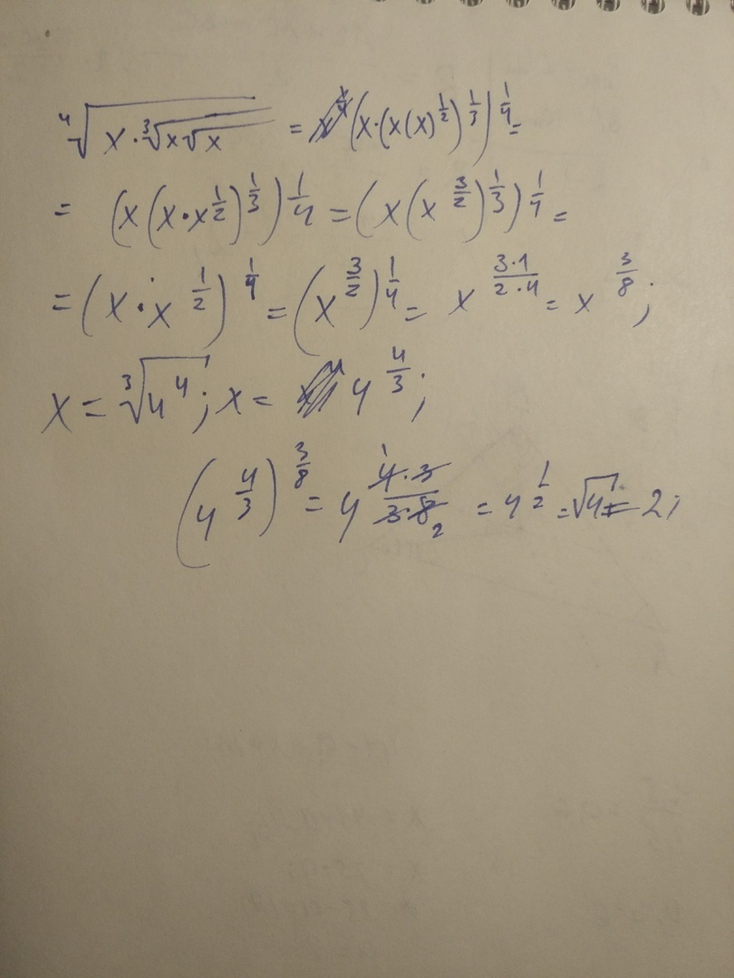 Пользуясь стандартным правлом, что (x)^(1/2)=√x, ∛x=x^(1/3) и так далее получаем ответ 2