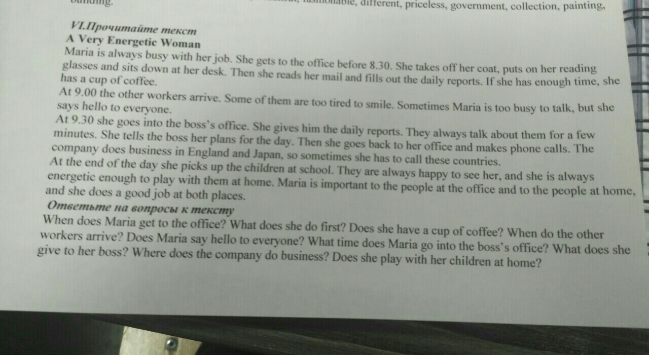 6. Maria goes to boss's office at 9:30.