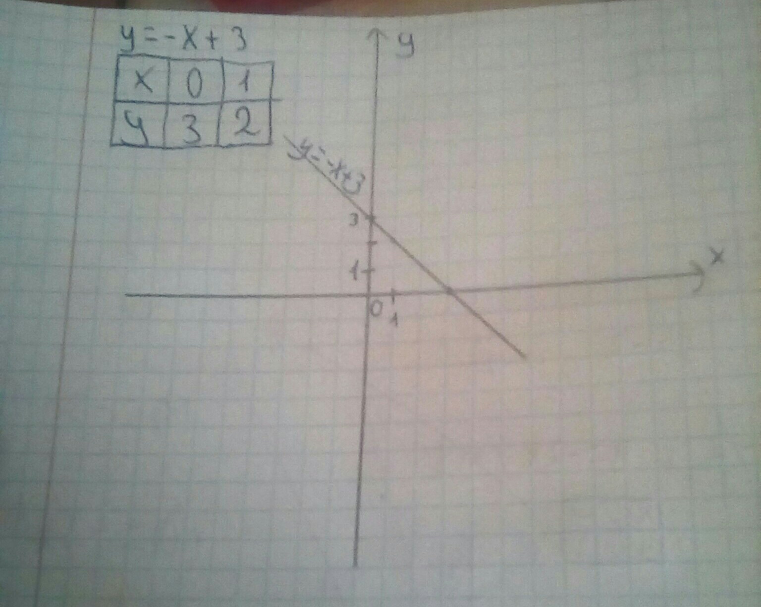 постройте график функции у =-х+3 и ответьте на вопросы а) найдите точки пересечения с осьями координат б)выясните проходит ли график функции через точку А (-1;1)В(-4;7)