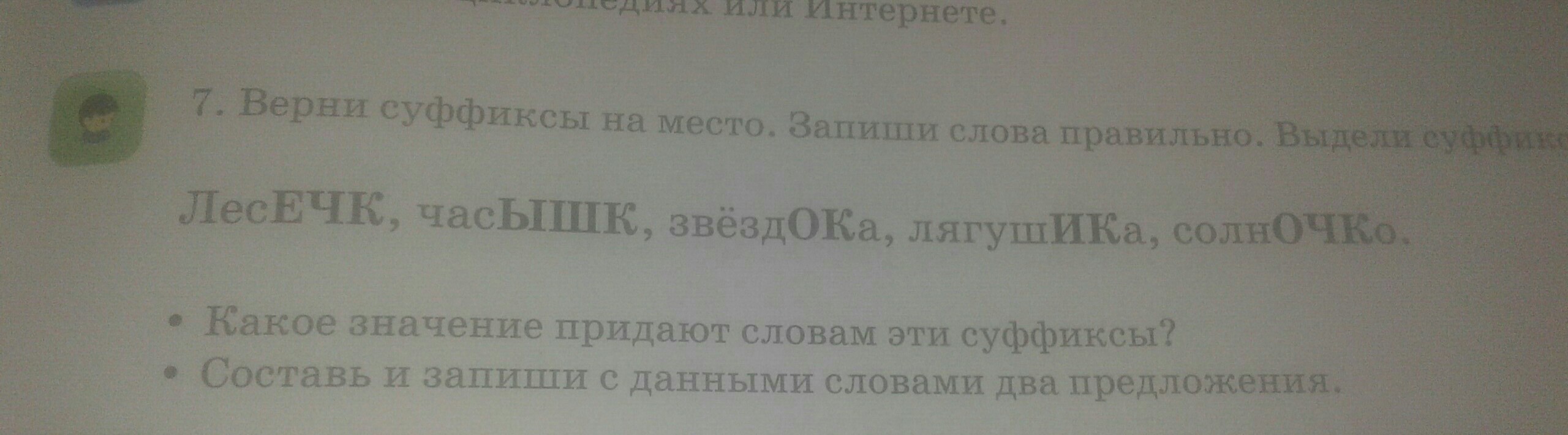 Суффиксы придают словам уменьшительно-ласкательную форму.