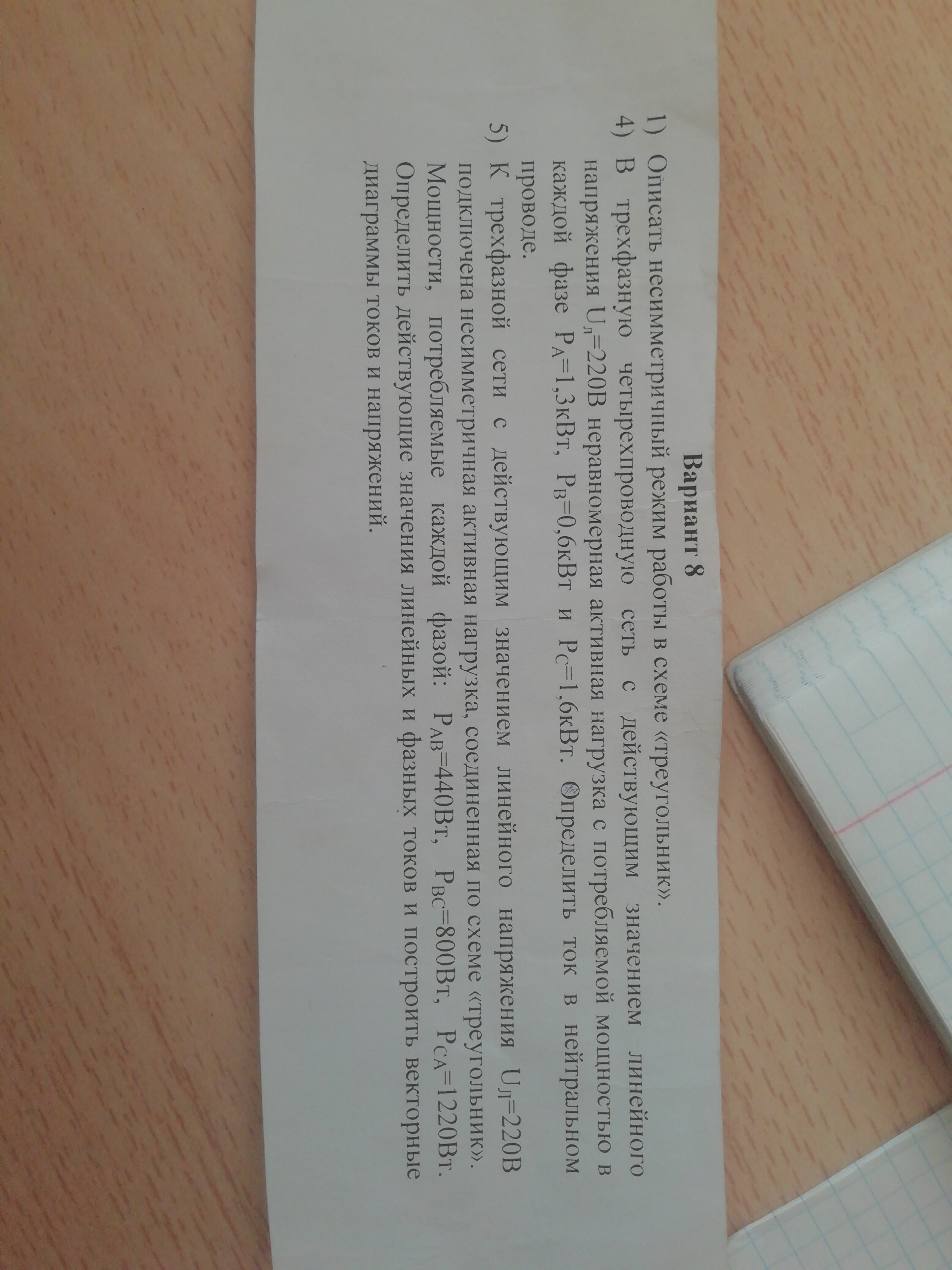 1. При соед. нагрузки ∆-ком Uф=Uл, и фазные токи Iф=Uф/Zф (U,I -вектора) фаз АВ, ВС и СА соответственно.