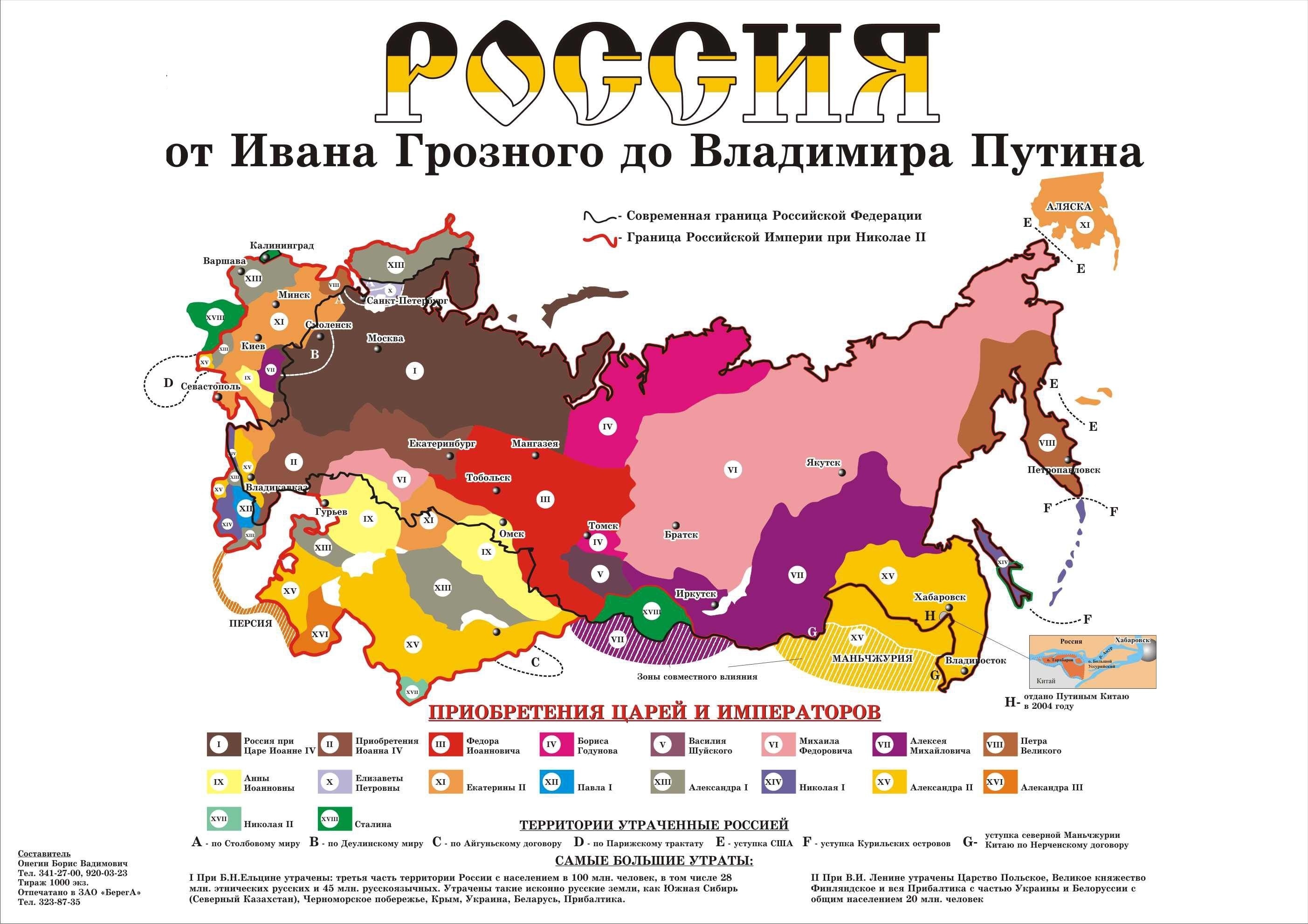 Какие территории были присоединены и отсоединены за всю историю России. Ответьте пожалуйста, очень надо!!!