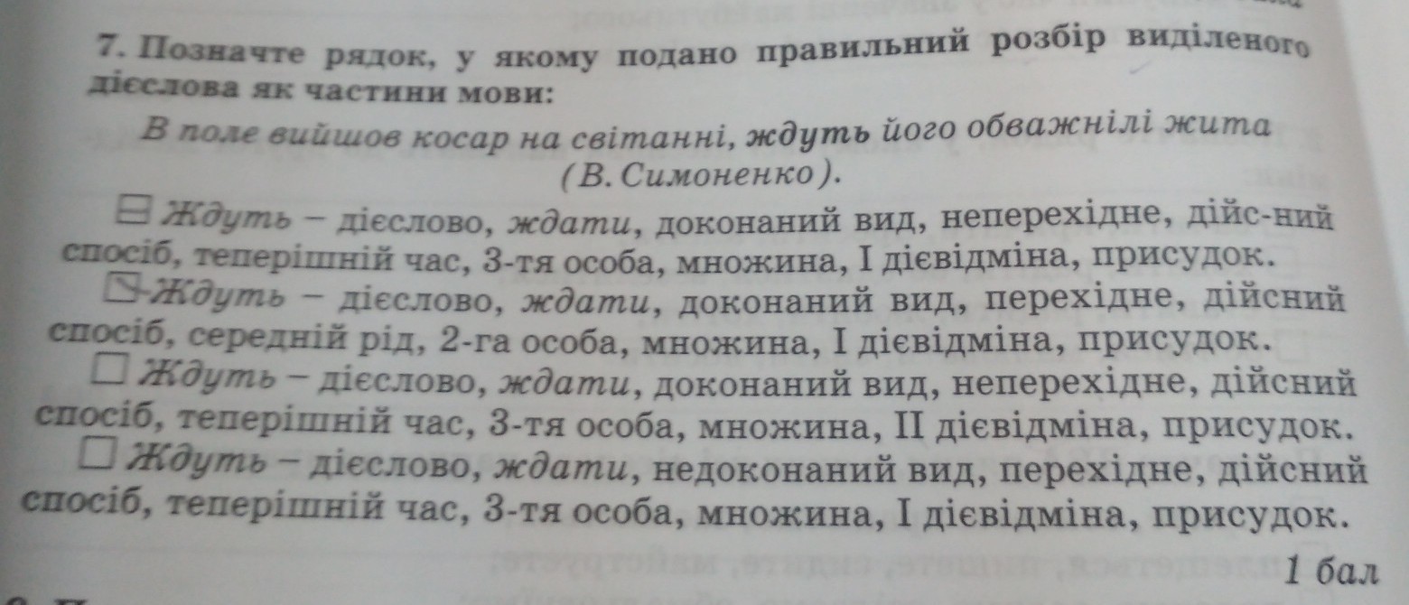 Правильний розбір дієслова ждуть у останньому, четвертому рядку.
