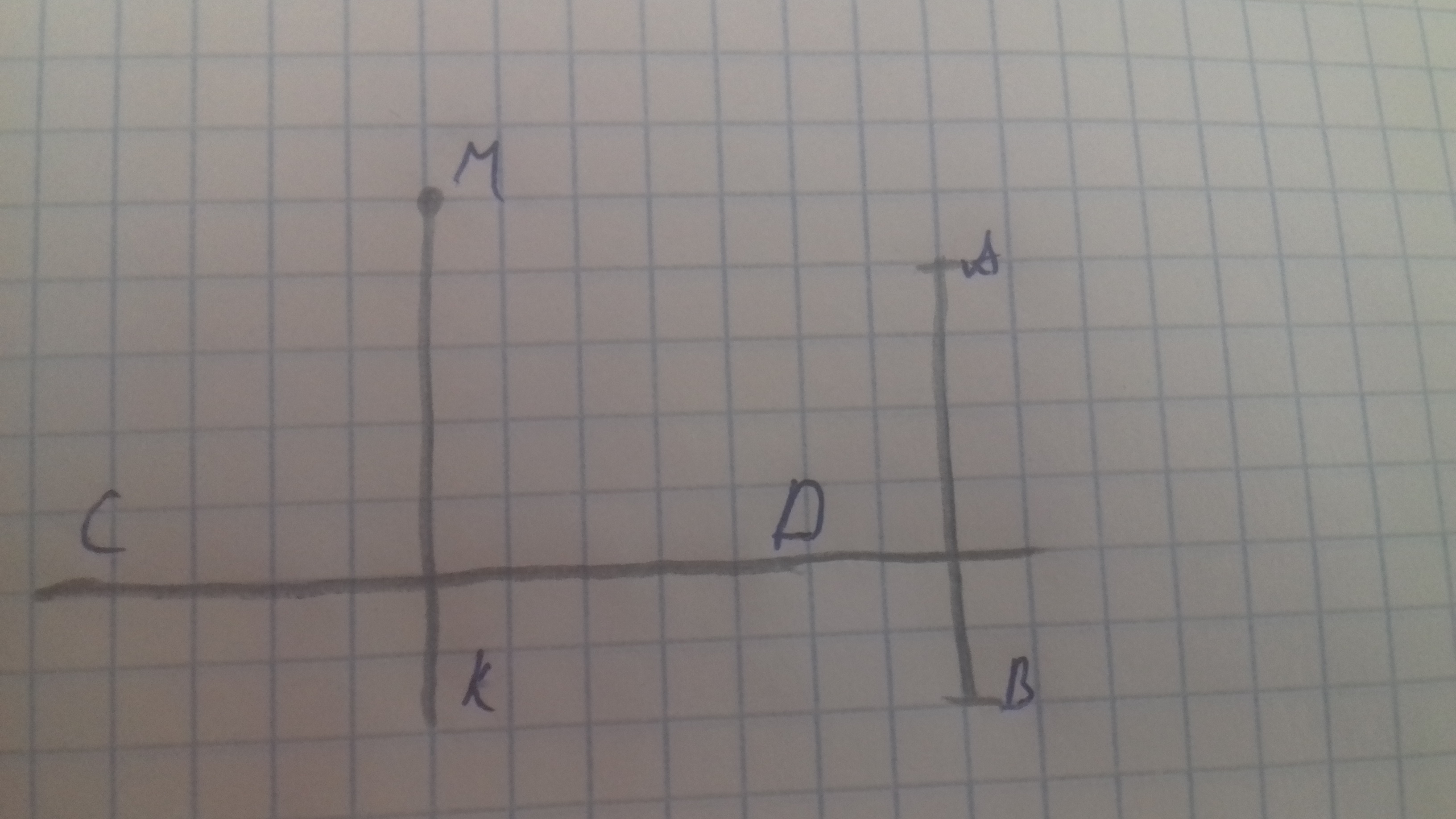 Начертите прямую CD, луч MK и отрезок AB так, чтобы прямая пересекала луч и трезок, а луч не пересекал отрезок.