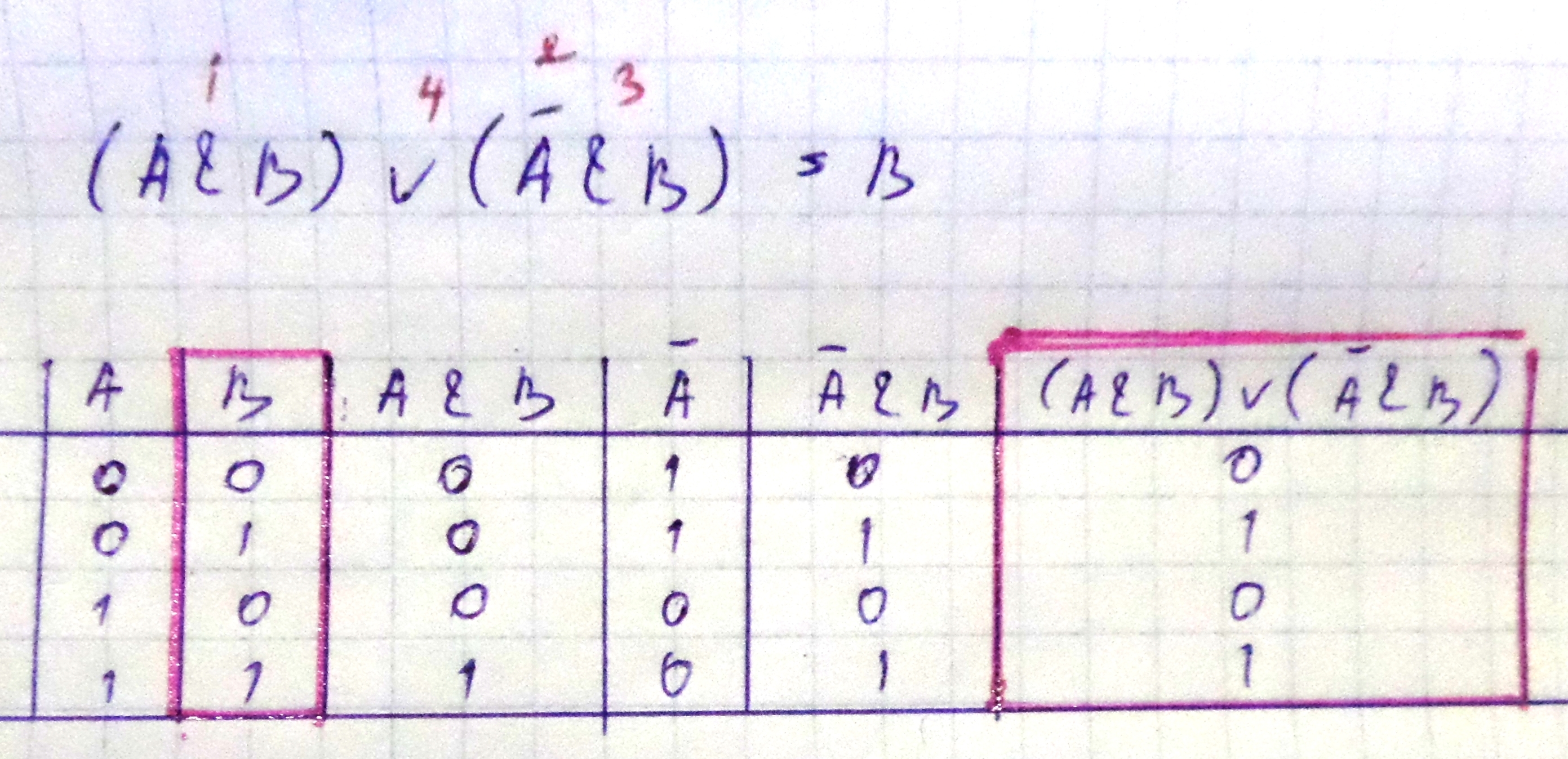Сверху равенства указан порядок действий. В таблице значения в столбце В и в последнем столбце совпадают.