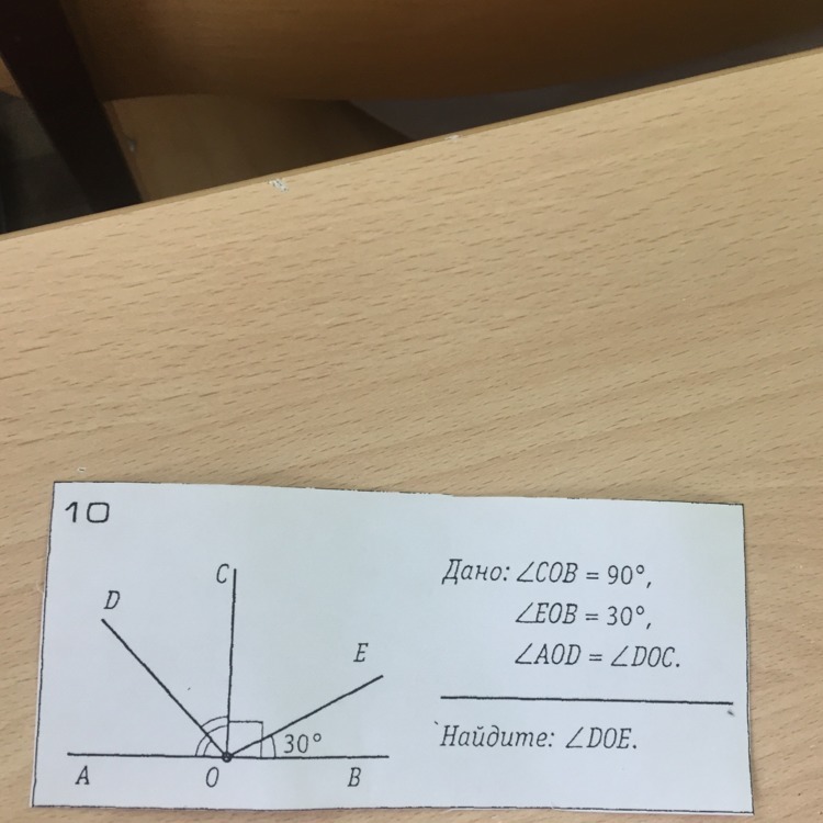т.к. угол АОD=углу DОС получается 30÷2=15