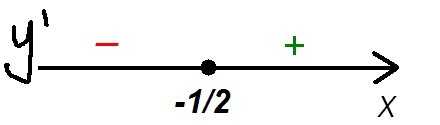 При переходе через точку -1/2 производная меняет свой знак как показано на картинке. Значит, это точка минимума.