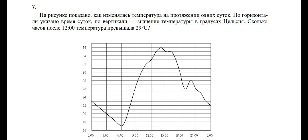 с 12.00 до 18.00 температура превышала 29 градусов, т.е. 6 часов