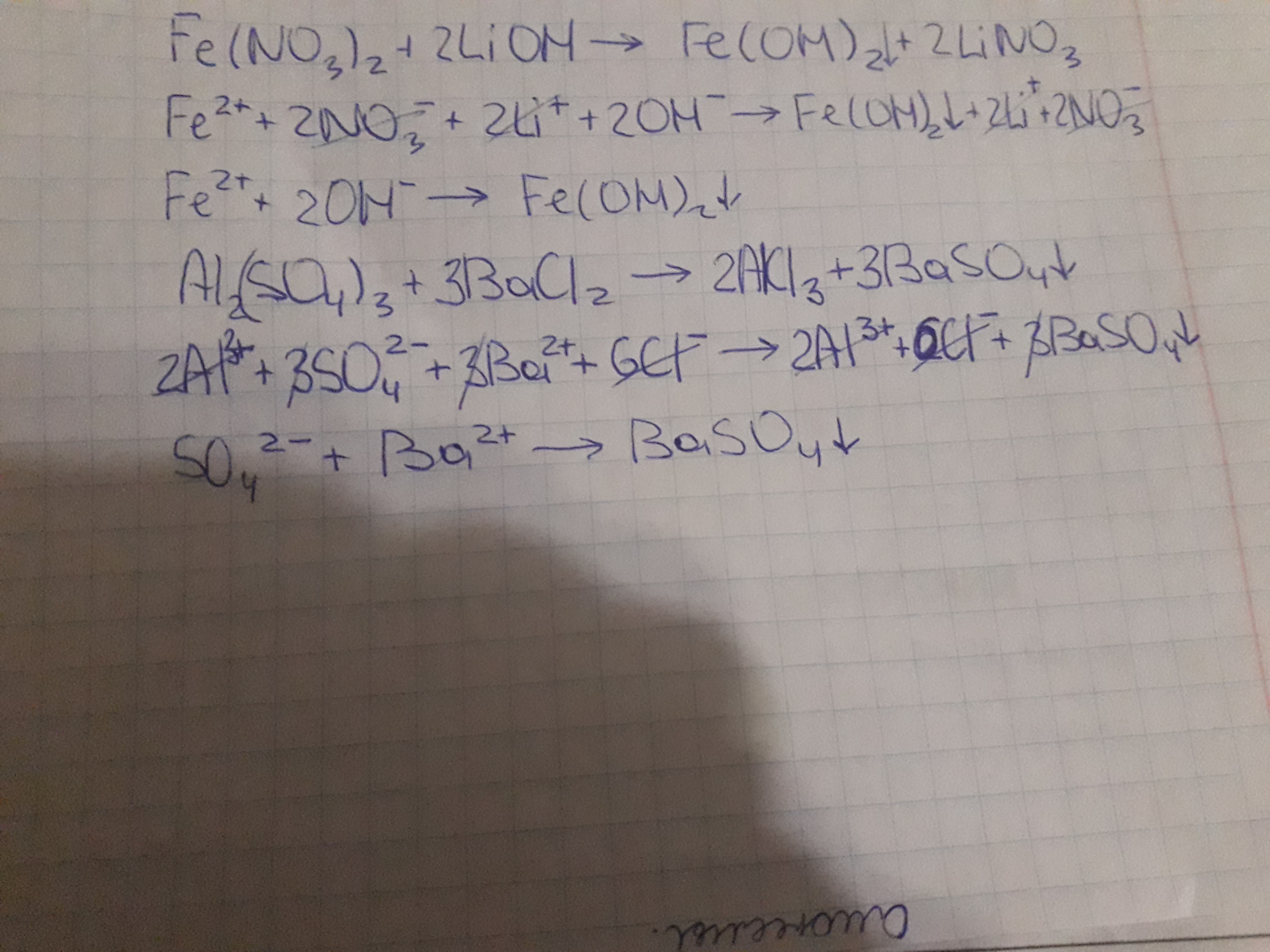 Складіть йонно-молекулярні рівняння реакцій , що відбуваються в розчині між електролітами :а) ферум(2)нітрат і літій гідроксид б) алюміній сульфат і барій хлорид
