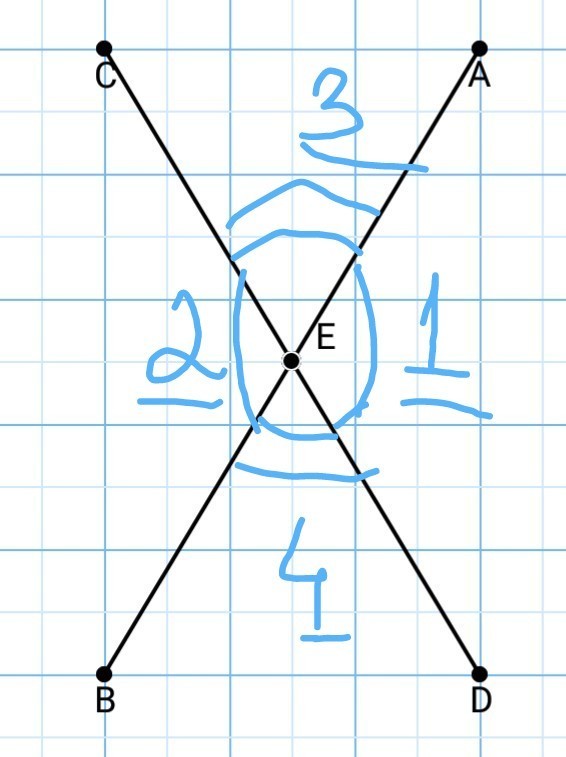 Так как вертикальные углы равны, то уг.3=уг.4