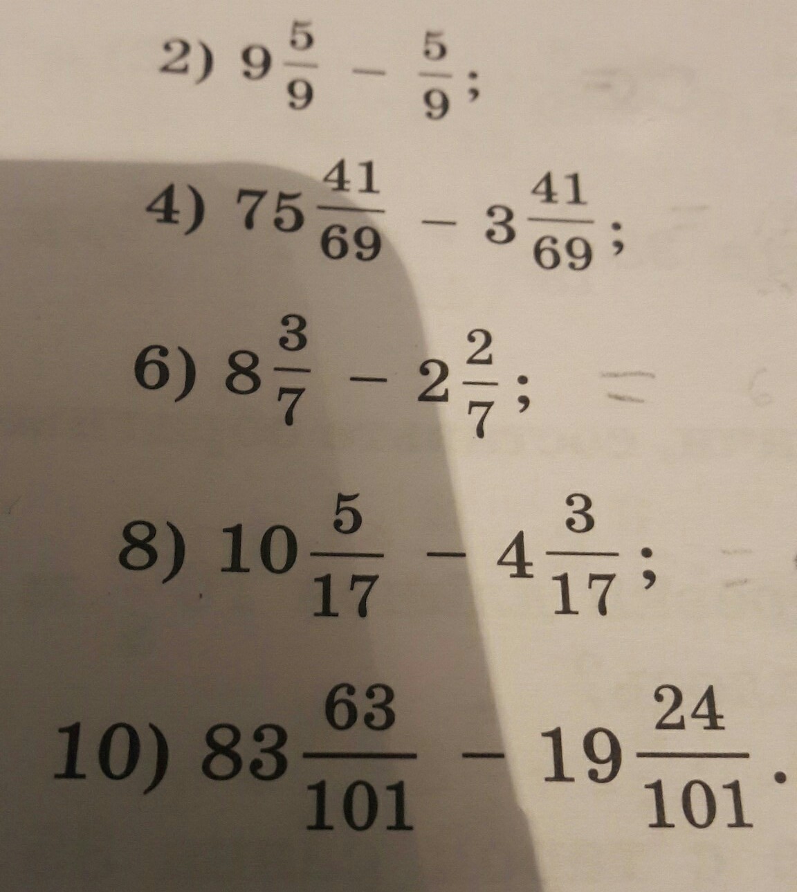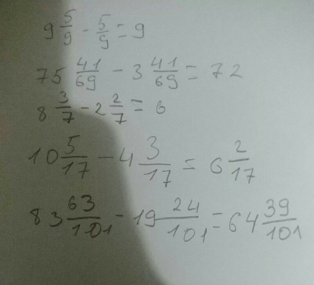 5) 83 63/101-19 24/101 = (83-19)+(63/101-24/101) = 64 39/101